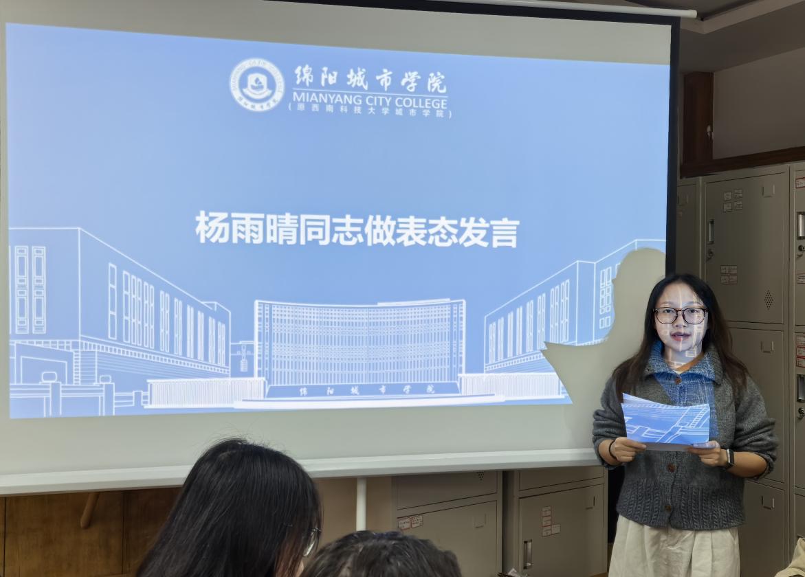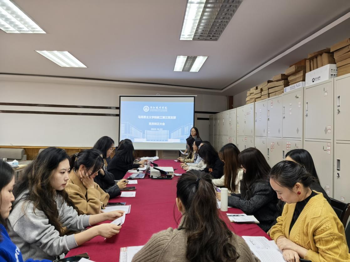 10月22日,绵阳城市学院马克思主义学院教工第三党支部在游仙校区博艺楼204会议室召开了党员转正大会,讨论杨雨晴同志按期转为中共正式党员事宜。会议由党支部组织委员寇壤主持,党支部全体党员参加。