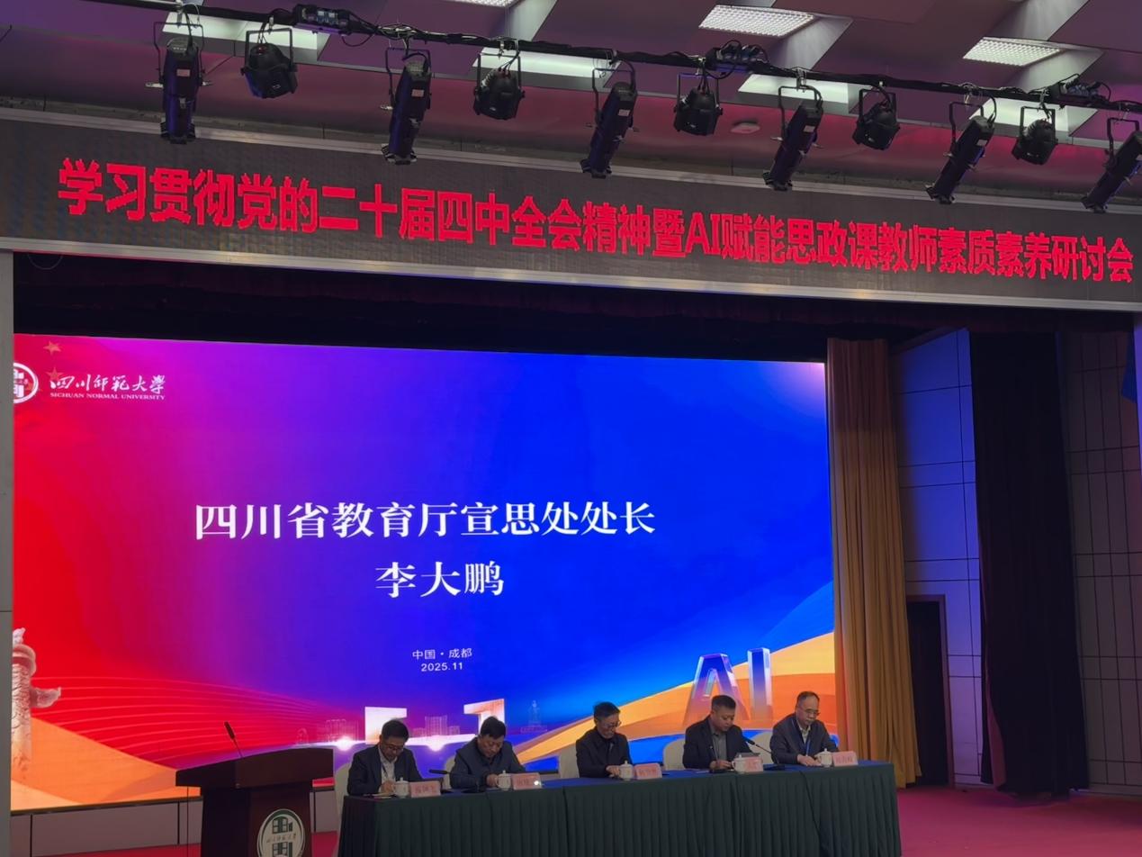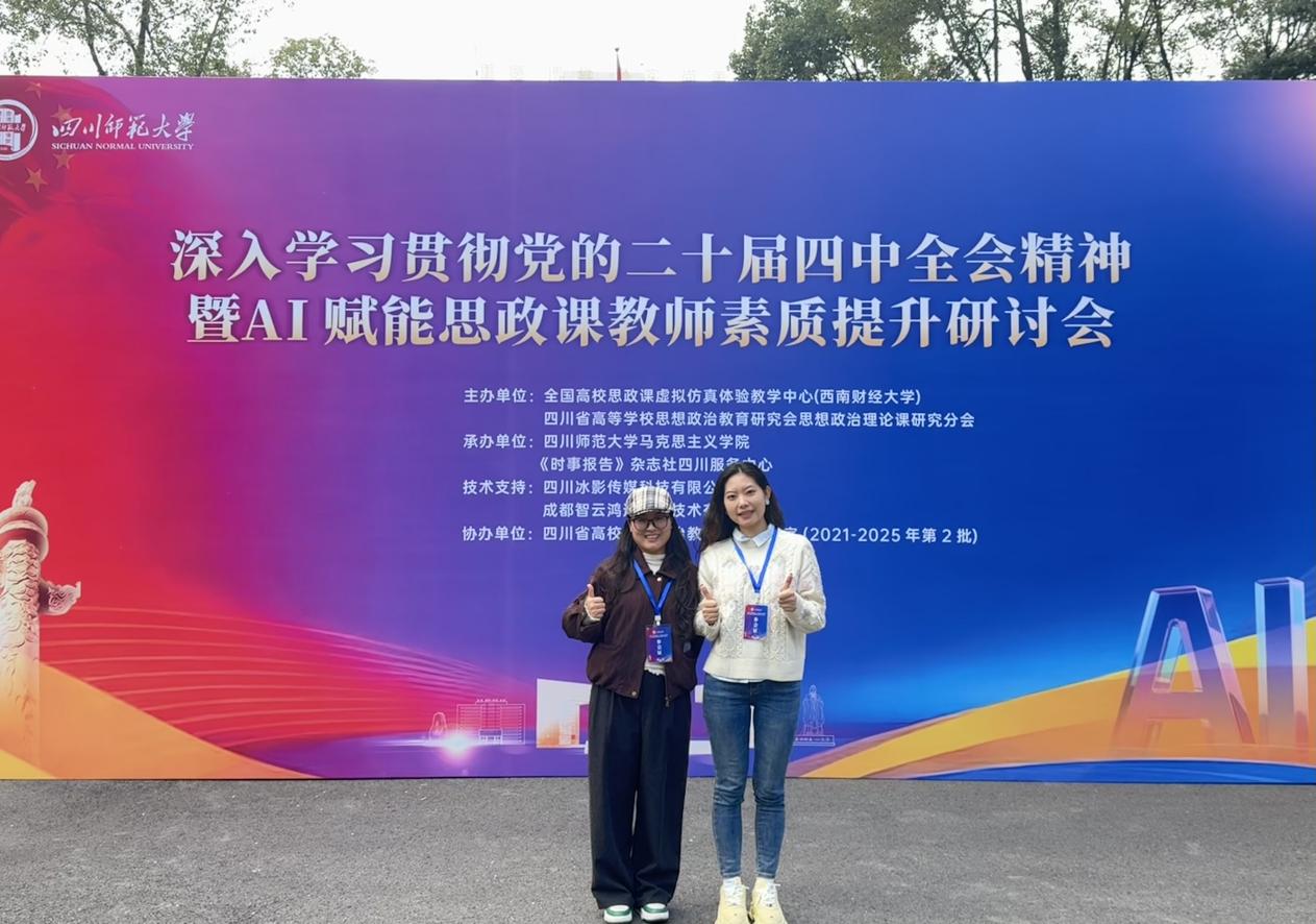为深入学习贯彻党的二十届四中全会精神,主动适应人工智能时代对思想政治教育提出的新要求,2025年11月15日,由全国高校思政课虚拟仿真体验教学中心和四川省高等学校思想政治教育研究会思想政治理论课研究分会主办的“深入学习贯彻党的二十届四中全会精神暨AI赋能思政课教师素质提升研讨会”在四川师范大学举行。我校马克思主义学院委派房静、冯韵两名青年教师前往参会,与全省高校思政教育同仁共同探讨新时代思政课的守正与创新。