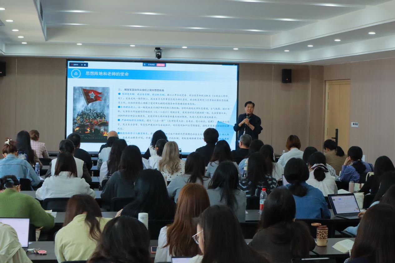 讲坛开篇,李江副教授强调,宣传思想阵地是思政教育的关键依托,思政课教师作为青年思想引领的主力军,必须牢牢占领宣传思想高地,为开展爱国主义教育、引导学生树立爱国情怀筑牢思想根基。