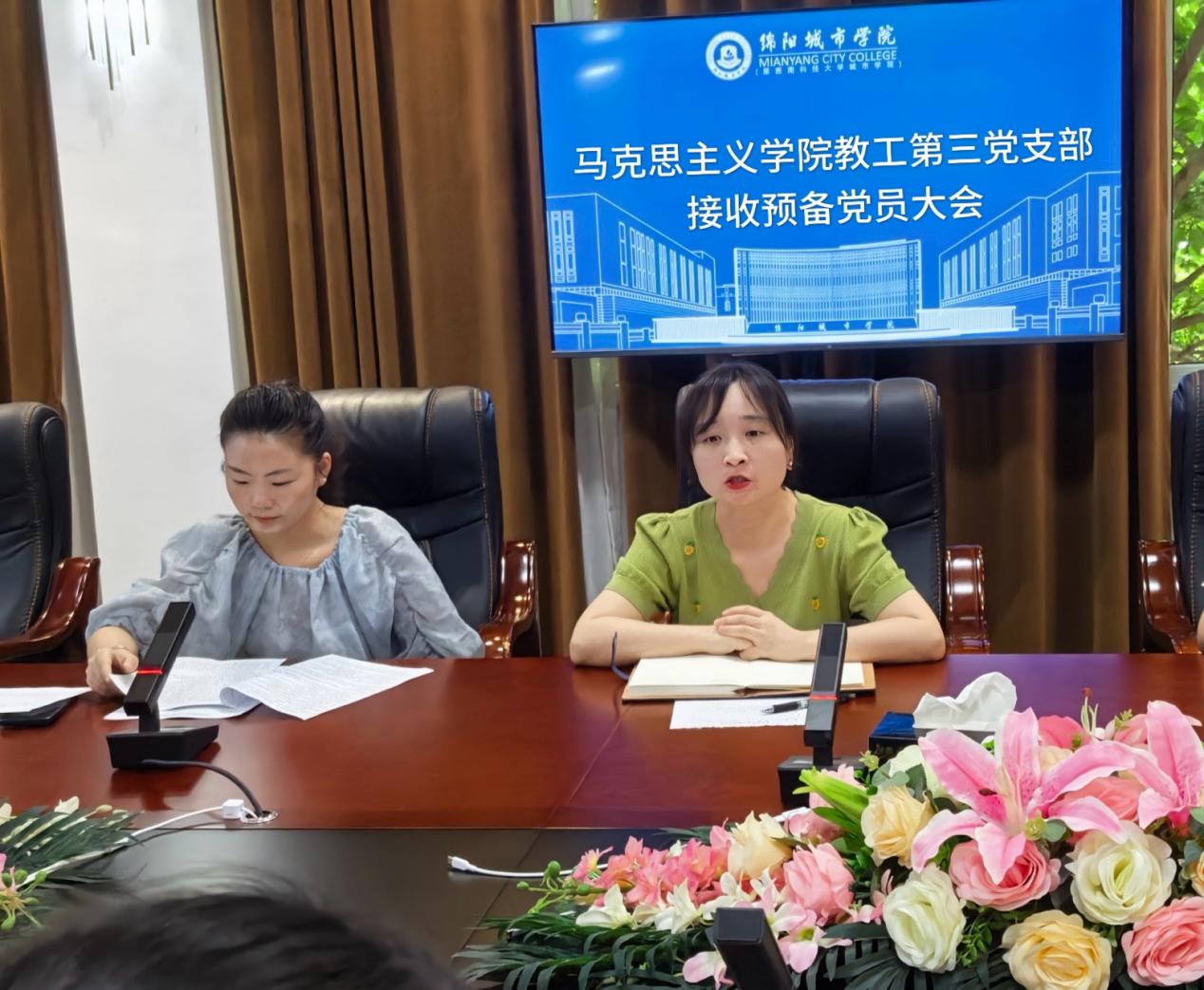 2025年7月11日上午,马克思主义学院教工第三党支部在游仙校区图书馆二楼会议室召开了党员发展大会,讨论吸收孙妍同志为中共预备党员事宜。党支部全体党员参加会议,会议由组织委员寇壤主持。