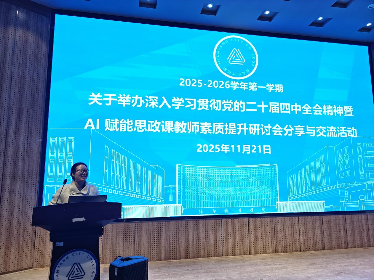 本次活动由组织委员冯韵作主题分享。冯韵以“坚守‘政治要强’根本要求,AI赋能思政育人的守正与创新”为题,系统阐述了在科技迅猛发展的背景下,思政课教师坚持正确政治方向的极端重要性。她指出,党的二十届四中全会为新时代思政课建设指明了方向,无论技术如何演进,思政课教师都必须将“政治要强”置于首位,牢牢坚持马克思主义在意识形态领域的指导地位。当AI技术应用于教学实践时,核心在于“赋能”而非“替代”,技术必须服务于“立德树人”这一根本目标,助力教师深化理论阐释、丰富教学形式、提升育人实效,决不能削弱思政课的政治属性与思想引领功能。她的分享紧扣时代脉搏,逻辑清晰,引发了在场教师的强烈共鸣。