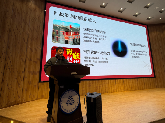 本次会议由党支部周序锟同志作主题分享。周老师聚焦习近平总书记重要文章《推进党的自我革命要做到“五个进一步到位”》的核心要义,系统阐释了自我革命作为我们党跳出历史周期率“第二个答案”的重大意义。与会党员结合教学科研实际,深入交流学习体会。分享指出,当前中国式现代化建设任务繁重,必须将自我革命精神贯穿全面从严治党全过程,确保思想认识、党性锤炼、权力规范、监督执纪和管党治党责任落实“五个进一步到位”。会议强调,党员教师需以理论武装筑牢信仰根基,在思政课教学中践行“五个进一步到位”要求,将党的创新理论转化为育人实效。