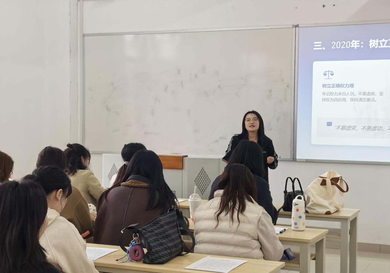 为深入学习贯彻习近平总书记关于树立和践行正确政绩观的重要讲话和重要指示精神,引导党员教师筑牢思想根基、强化使命担当,切实把思想和行动统一到党中央决策部署上来,3月13日下午,马克思主义学院教工第三党支部在安州校区博雅楼302室召开“学习贯彻习近平总书记关于树立和践行正确政绩观的重要论述”专题理论学习会。会议由邢瑞嘉同志主讲,党支部全体党员教师参与学习。